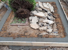 Сначала мы разбираем гранитный цоколь, разбиваем находящийся под ним бетон. В получившуюся траншею укладываем арматуру, по периметру участка возводим опалубку.
