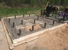 Зачищаем поверхность основания, на которой будет установлено надгробье, врезаем опорные арматурные штыри.